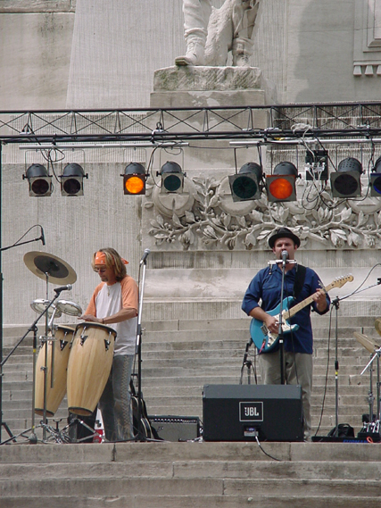 Luke (l) at Klipsch Music Center (Verizon Wireless Music Center) Side Stage for the Bruce Springsteen Concert (5/2006) with Timothy Hof on congas & Pat McGinley on guitar)