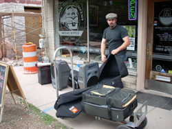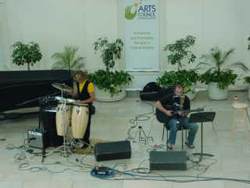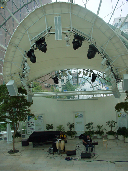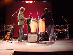 Luke (l) at Klipsch Music Center (Verizon Wireless Music Center) Side Stage for the Bruce Springsteen Concert (5/2006) with Timothy Hof on congas & Pat McGinley on guitar)